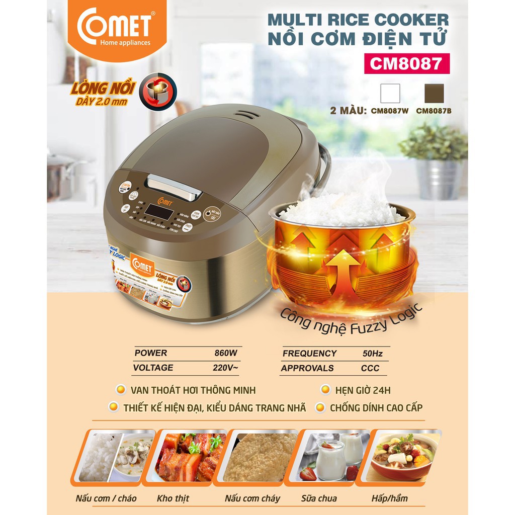 Giới thiệu [Mã ELHADEV giảm 4% đơn 300K] Nồi cơm điện đa năng Comet CM8087 - 1.8 Lít