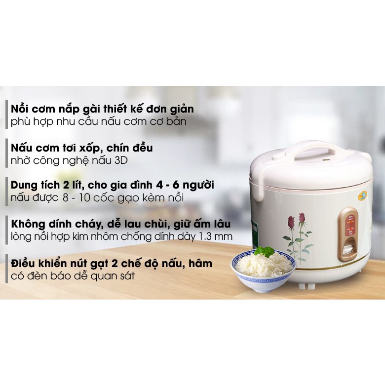 Nồi cơm nắp gài Happycook HC-200 nhập khẩu trực tiếp từ Indonesia, chất lượng cao, được nhiều người sử dụng, rất thích hợp dùng trong các gia đình Việt Nam.