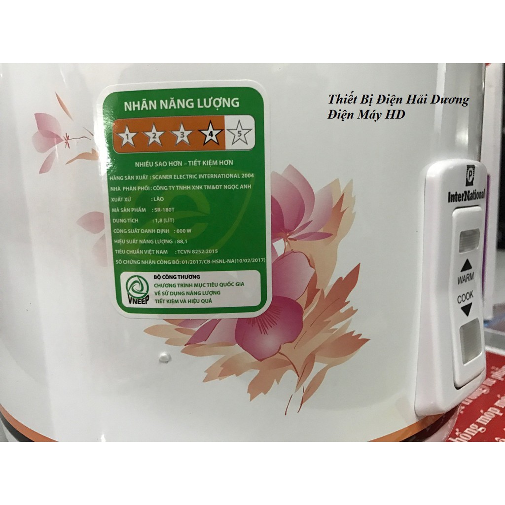 Nồi cơm điện International SR-180T - Dung tích 1.8L - Công suất 500w - Bảo hành 12 tháng