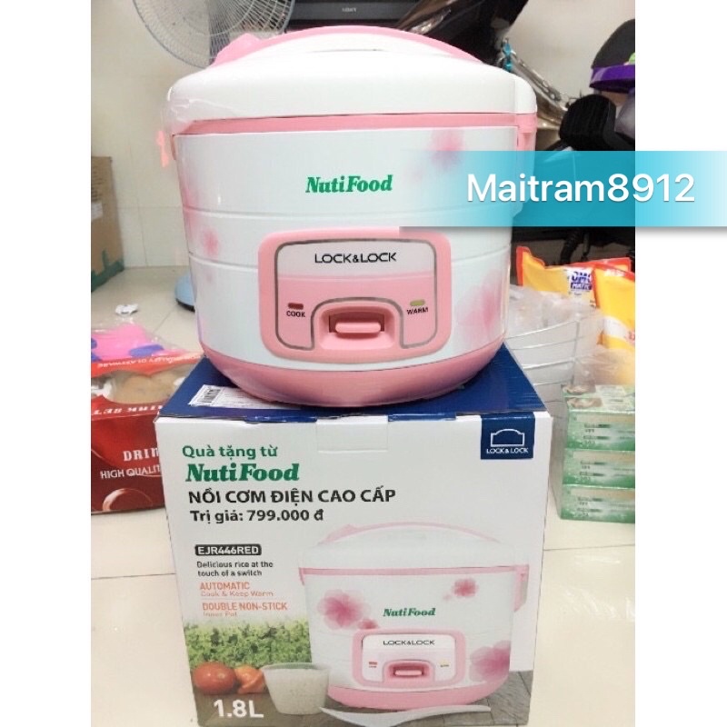 Nồi cơm điện Lock and lock, dung tích 1,8lit.- Nồi này mình dùng trực tiếp rồi, nấu cơm cực nhanh, chưa đến 5 phút đã chín cơm.