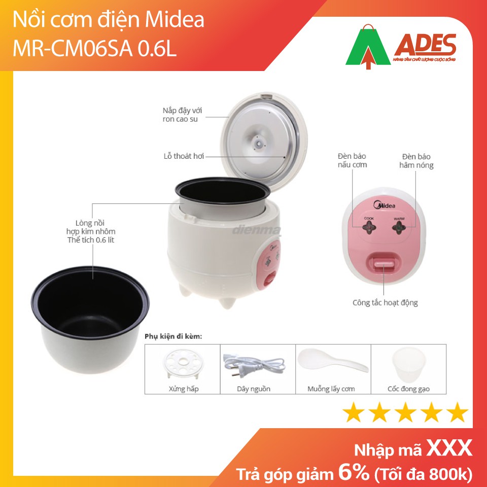[Mã 154ELSALE2 giảm 7% đơn 300K] Nồi cơm điện Midea MR-CM06SA 0.6L - Chính hãng, Giá rẻ NEW 2021