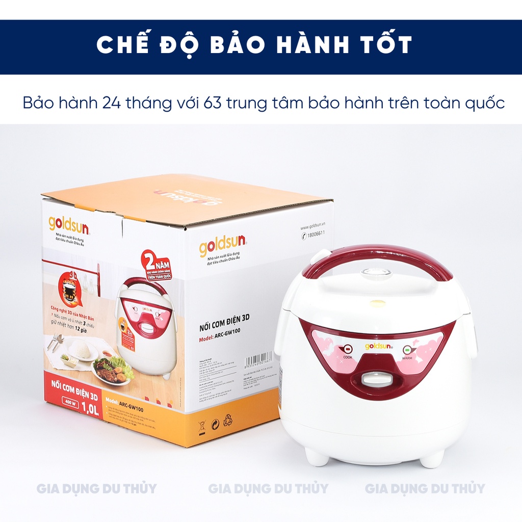 Nồi cơm điện mini 1 lít 3D Goldsun ARC-GW100 chính hãng, nắp gài, lòng nồi hợp kim nhôm cứng, phủ chống dính 2 mặt