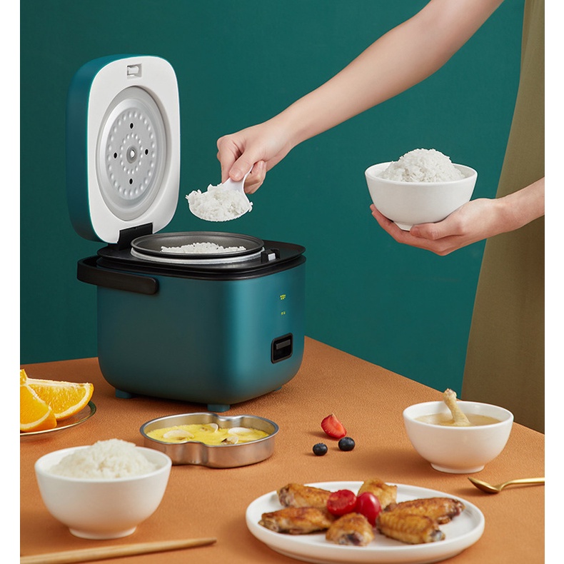 Nồi cơm điện mini tiện dụng (muỗng cơm,cốc đong,khay hấp).Nồi cơm điện mini, chuyên dành cho các bạn sinh viên, dân văn phòng, gia đình nhỏ 1-2 người. Ngoài việc cắm cơm đơn thuần có thể nấu nhiều món: hầm các loại canh, suop, luộc khoai, trứng và rau củ, nấu cháo, bột ăn dặm cho bé, có thể nấu ở chế độ mở nắp nồi dễ để xào đơn giản, ngoài ra có kèm khay hấp có thể hấp thêm đồ ăn, bánh bao, trứng ...