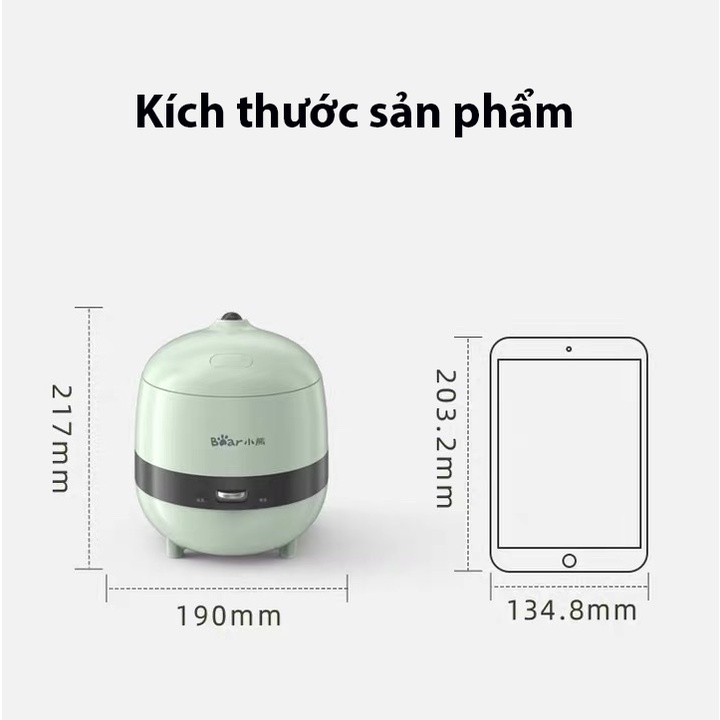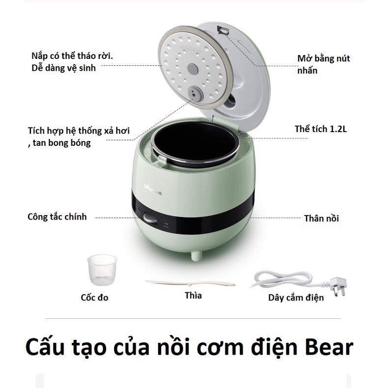Nồi cơm điện mini BEAR dành cho 1-2 người ăn - Nhỏ gọn - Tiện ích - Công suất 350W - Dung tích 1.2L - Bảo hành 6 tháng