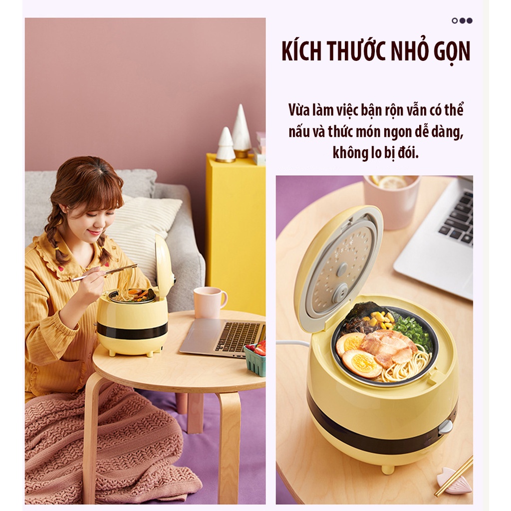 Bạn đang là sinh viên? Bạn đang độc thân? Bạn bận rộn mà không có thời gian nấu nướng? Hãy sở hữu ngay cho mình chiếc nồi đa năng mini 1.2L bên mình ngay nhé bởi những nối lo của bạn sẽ được giải quyết!Dung tích:1,2L thích hợp 1-2 người ăn (phù hợp với sinh viên, người độc thân, ký túc xá, ...)