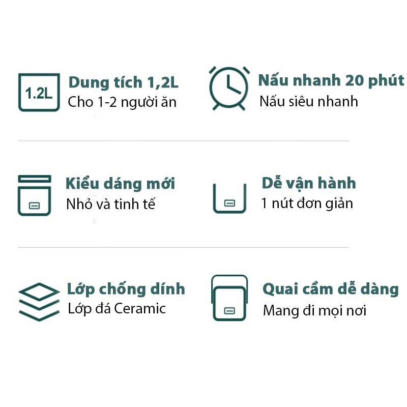 📍Nồi Cơm Mini thiết kế 5 lớp, phủ lớp chống dính đá Ceramic: không sợ tróc, an toàn cho sức khỏe, thân thiện với môi trường.