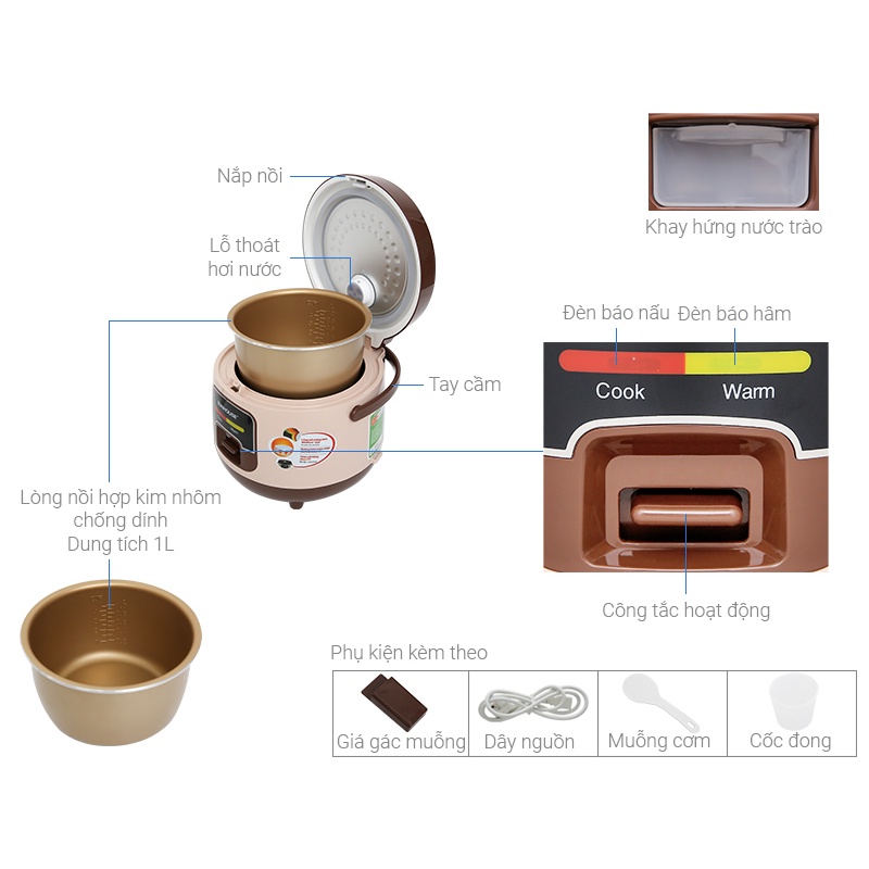 Giới thiệu Nồi Cơm Điện Mini Sunhouse SHD8208C Dung Tích 1 Lít Có Chống Dính, Bảo Hành Chính Hãng