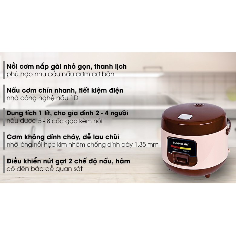 Thương hiệu: Sunhouse | Xem thêm các sản phẩm Nồi cơm điện của SunhouseMô tả ngắn
