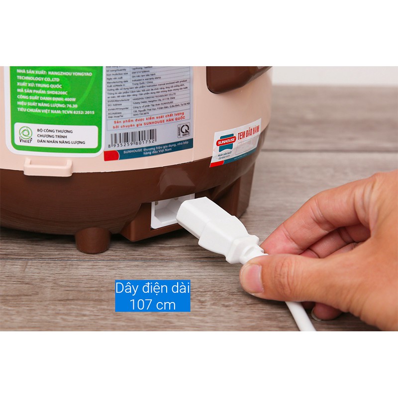 Sản phẩm được giám sát chất lượng bởi chuyên gia Hàn Quốc. Nếu bạn là một người yêu thích sự tiện lợi, bền bỉ và tiết kiệm thì chiếc nồi cơm điện 1L SUNHOUSE SHD8208C chính là lựa chọn vô cùng hoàn hảo.