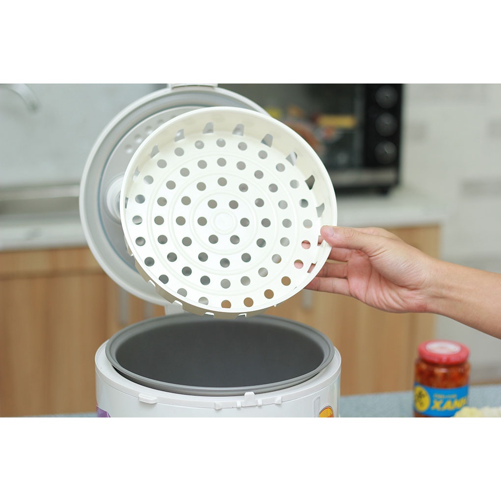 ● Vỏ ngoài bằng nhựa cao cấp cùng dung tích 1.8 lít phù hợp với gia đình có 4 - 6 thành viên● Nắp nồi thiết kế dạng tổ ong, ngăn không cho nước rơi xuống làm cơm bị nhão và nhanh thiu