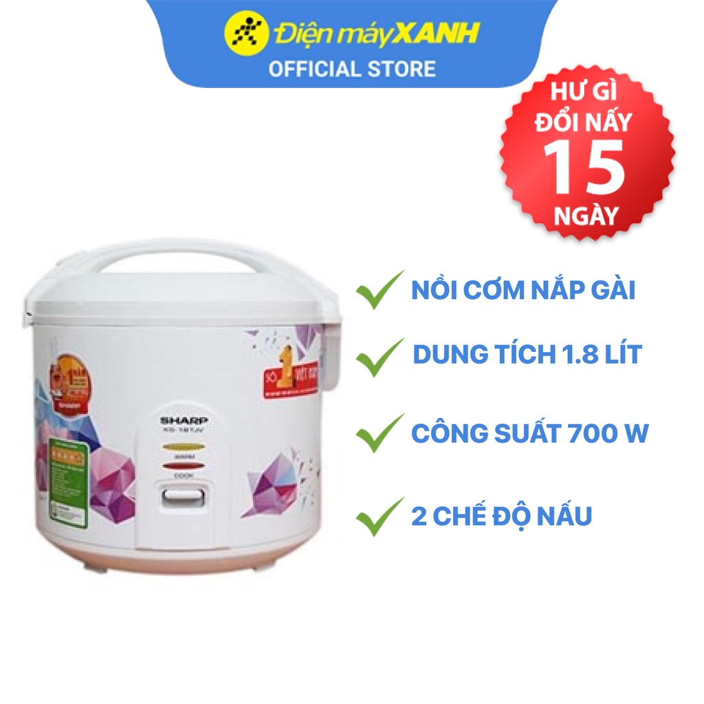 [Mã ELHADEV giảm 4% đơn 300K] Nồi cơm điện nắp gài Sharp KS-18TJV 1.8 lít 700 W