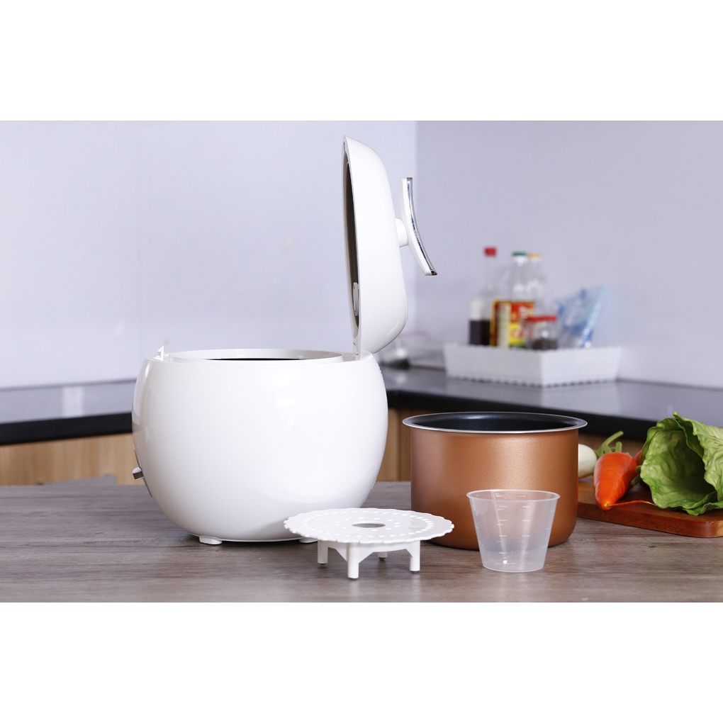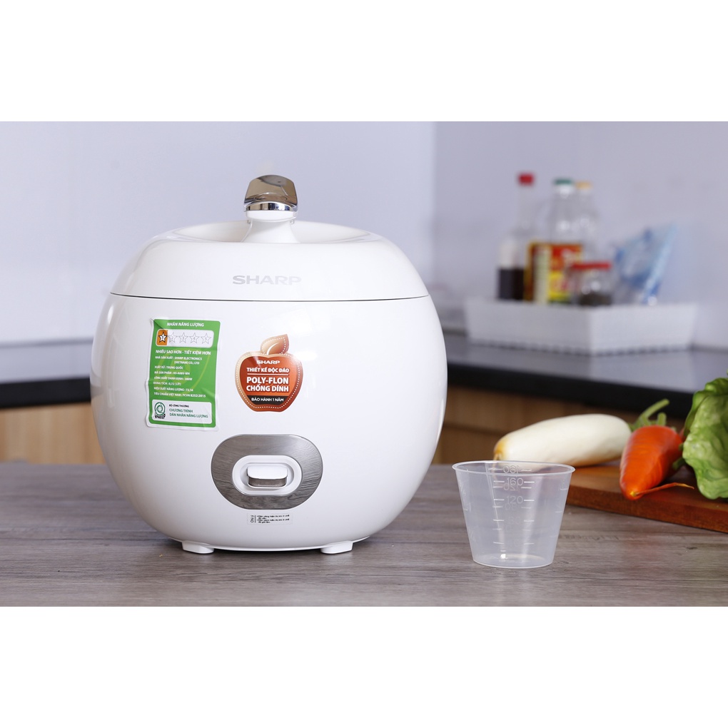 ● Nồi cơm điện Sharp KS-A08V-WH Trắng thiết kế độc đáo hình quả táo ấn tượng, bắt mắt, trẻ trung, nổi bật trong không gian bếp hiện đạiNồi cơm điện mini dung tích 0.72 lít nhỏ gọn, thích hợp dùng cho người độc thân, vợ chồng mới cưới… phục vụ cơm ngon cho 1 - 2 người dùng.