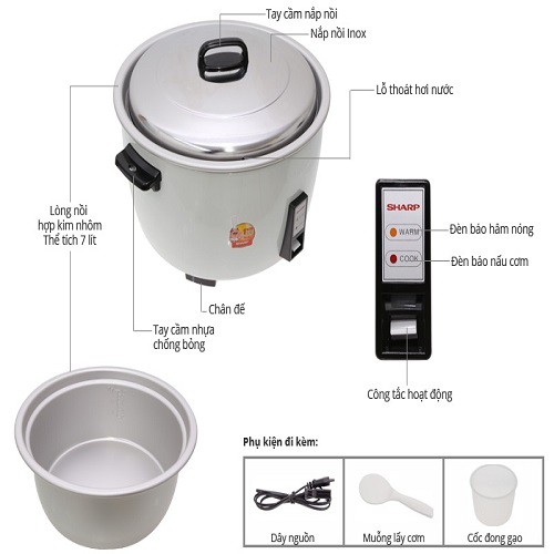 Thiết Bị Điện Gia Dụng > Đồ gia dụng nhà bếp > Nồi cơm điện || Nồi Cơm Điện Nắp Rời Sharp KSH-D77V (7L)-Hàng chính hãngCòn hàng