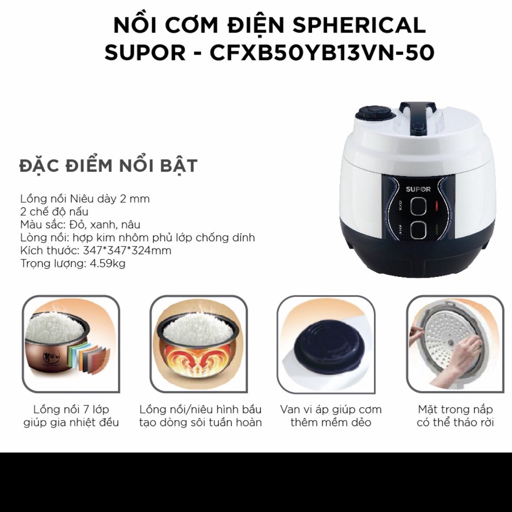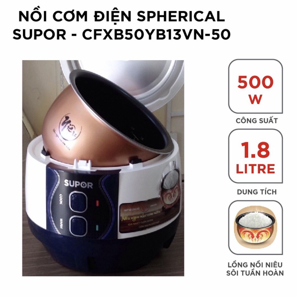 Thiết Bị Điện Gia Dụng > Đồ gia dụng nhà bếp > Nồi cơm điện || Nồi cơm điện niêu Supor CFXB50YB13VN-50 - 1.8LCòn hàng