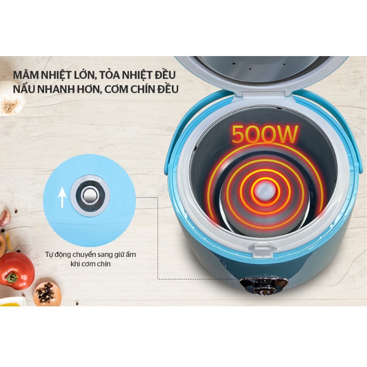 - Công suất 700W, đường kính mâm nhiệt lớn, tỏa nhiệt đều, cơm chín đều và ngon hơn.
