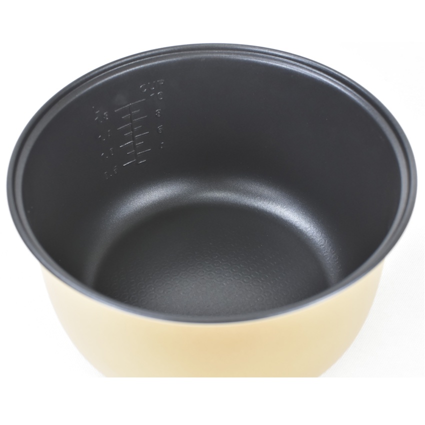 Lòng nồi 3 lớp chắc chắn làm bằng hợp kim nhôm siêu bền. Lớp gia cố bề mặt cứng cáp chống bị móp méo khi va đập mạnh. Lòng nồi được phủ lớp chống dính cao cấp, chịu được nhiệt độ cao, không phát sinh các chất độc hại trong quá trình sử dụng, an toàn cho sức khỏe người dùng. Lớp chống dính hạn chế bám dính, cơm không bị cháy xém mà vẫn giữ trọn dinh dưỡng, giúp bạn có thể vệ sinh lòng nồi dễ dàng.