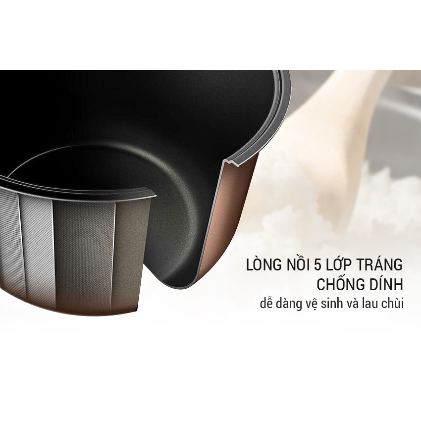 Cấu tạo lòng nồi: 5 lớp phủ chống dính