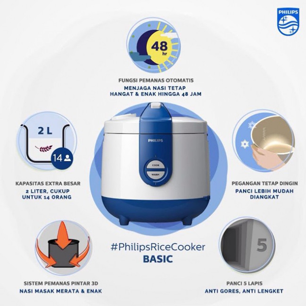 Thông số sản phẩm: Nồi cơm điện Philips HD3119/66 - 2 lítMàu sắc: Trắng xanh