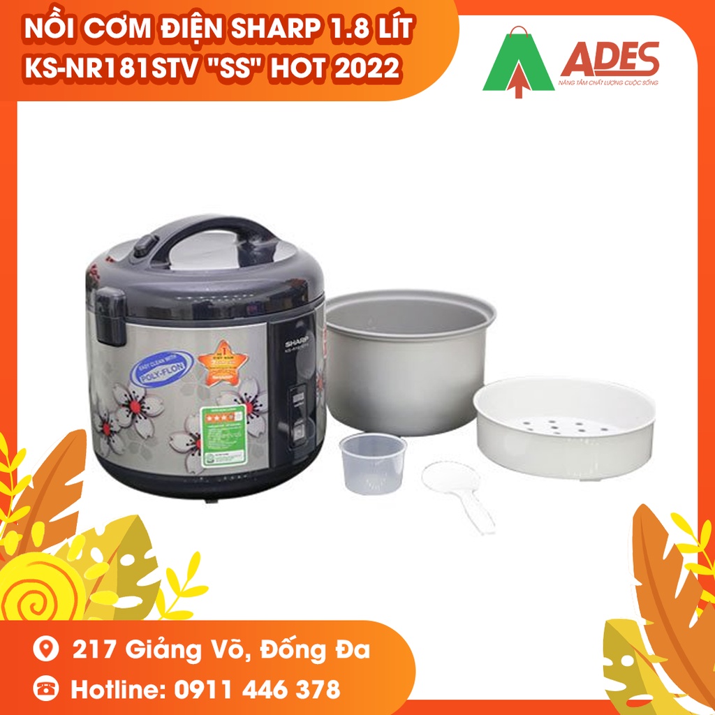 Nồi cơm điện Sharp 1.8 lít KS-NR181STV "SS" - NEW HOT 2022 - Bảo hành Chính hãng 12 Tháng