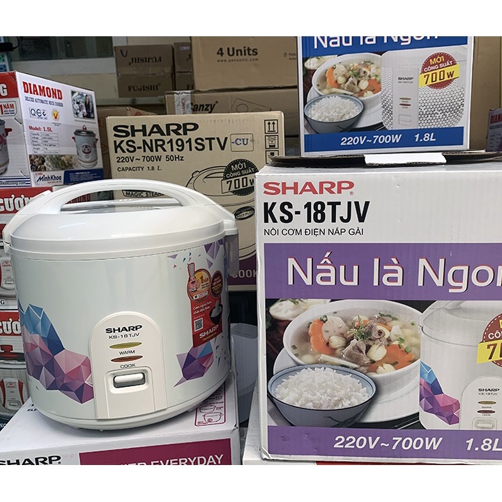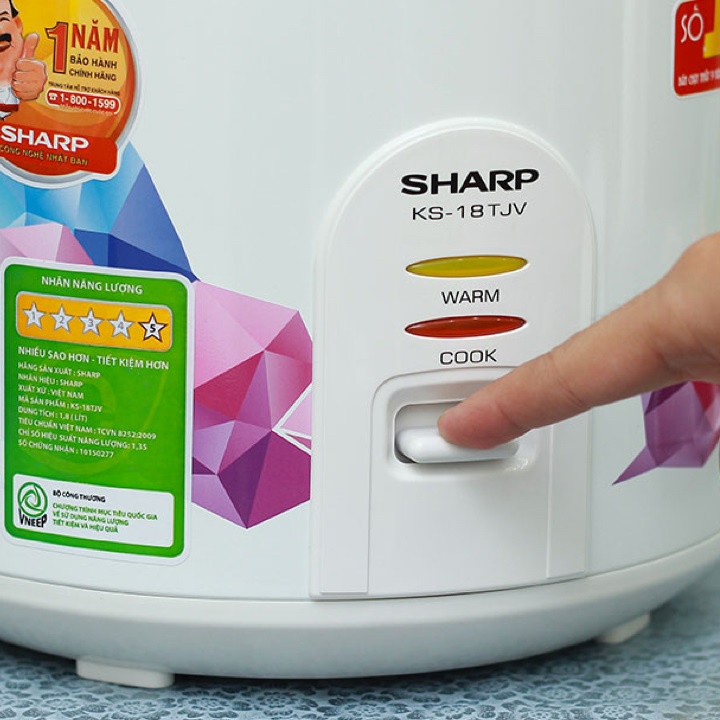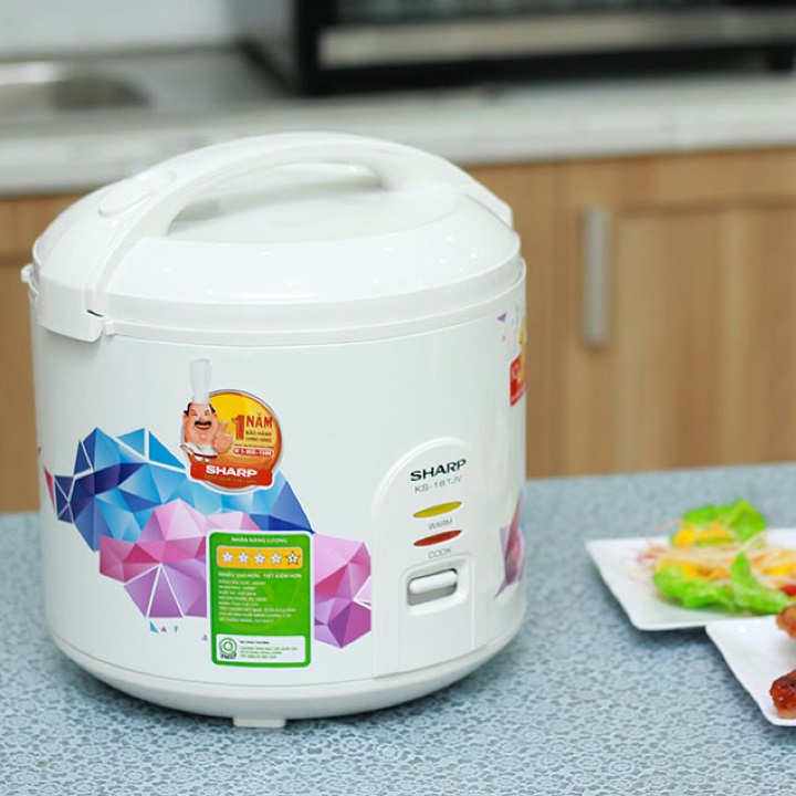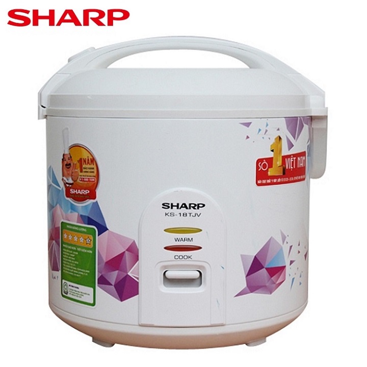 Nồi cơm điện Sharp KS-18TJV - Dung tích 1.8LNồi cơm điện Sharp KS-181TJV, Dung tích 1,8 Lít thích hợp dùng cho gia đình 4 - 6 người lớn, Lòng nồi hợp kim nhôm dày tráng men chống dính, nấu an toàn., Mẫu nồi cơm Sharp nắp cài chất lượng dược sản xuất tại Việt Nam. Nồi Cơm Điện Nắp Rời Sharp KS-181TJV có thiết kế nhỏ gọn, dễ dàng di chuyển và bố trí trong gian bếp, không chiếm nhiều diện tích. Kiểu nồi cơm nắp cài giúp bạn dễ dàng vệ sinh và dễ theo dõi quá trình nấu cơm.