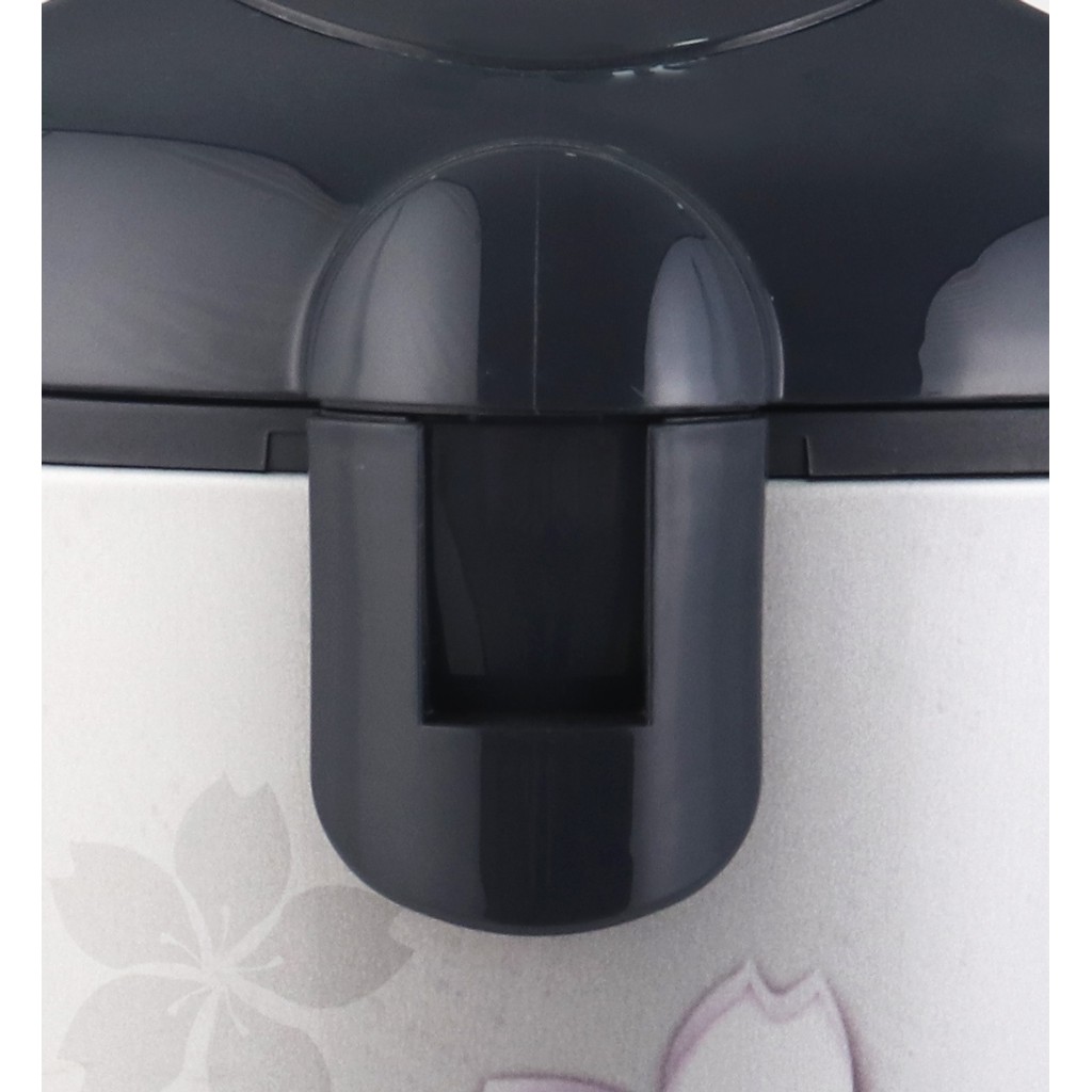 Nồi cơm điện Sharp KS-R231STV gây ấn tượng với mọi người bằng thân nồi màu xám nhạt trang nhã, các bông hoa 5 cánh xinh xắn được trang trí xung quanh giúp nồi nổi bật.