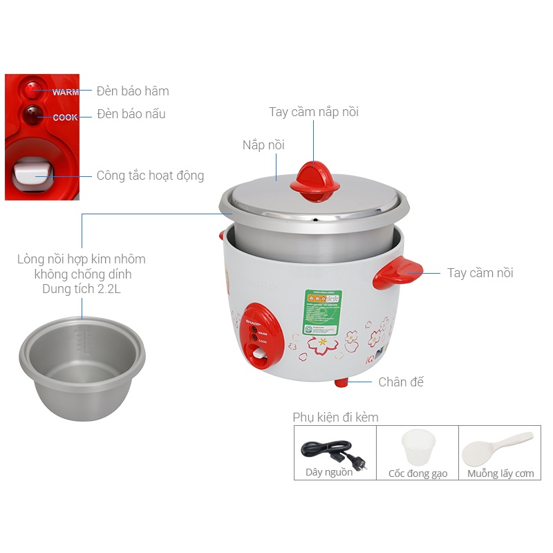 Giới thiệu [Mã ELHADEV giảm 4% đơn 300K] Nồi Cơm Điện Sharp 2.2lít KSH-D22, Hàng Nhập Thailand