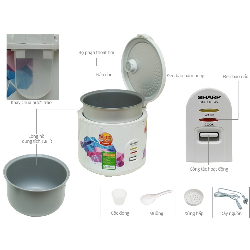 Giới thiệu [Mã ELHADEV giảm 4% đơn 300K] Nồi cơm điện Sharp KS-18TJV - Hàng chính hãng
