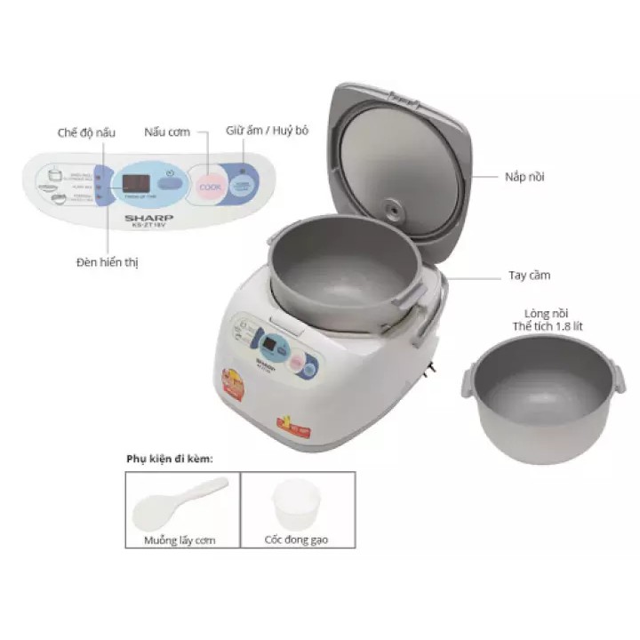 Giới thiệu Nồi Cơm Điện Sharp KS-ZT18 Thái Lan, Điểu Khiển Điện Tử Tiện Dụng, Lòng Nồi bằng Hợp Kim Nhôm Chống Dính, BH 12 Tháng