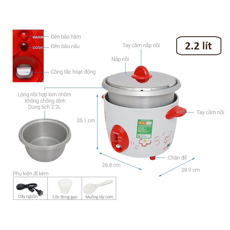 --- Nồi cơm điện Sharp nắp rời 2.2 Lít