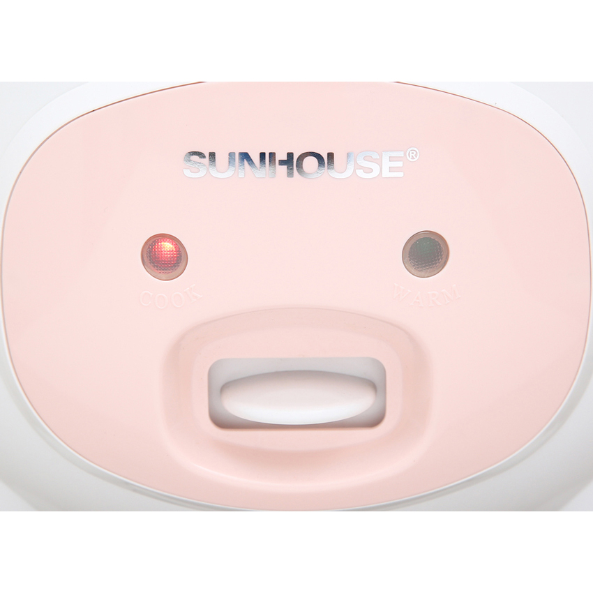 - Nồi cơm điện Sunhouse thiết kế nhỏ gọn, màu sắc trắng hồng tươi tắn nổi bật