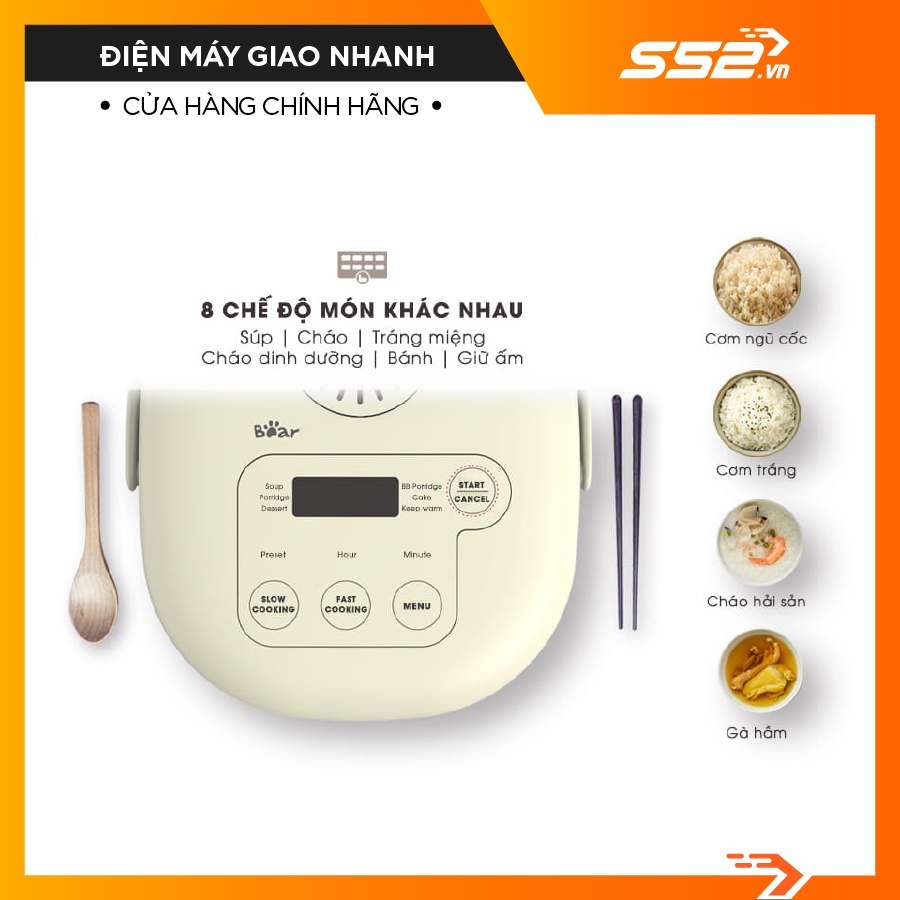 Thiết Bị Điện Gia Dụng > Đồ gia dụng nhà bếp > Nồi cơm điện || Nồi cơm điện thông minh Bear 2 lít SUBE015 - Bảo Hãnh Chính HãngCòn hàng