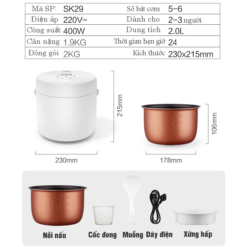 - Tên sản phẩm: Nồi cơm điện đa năng SK - 29