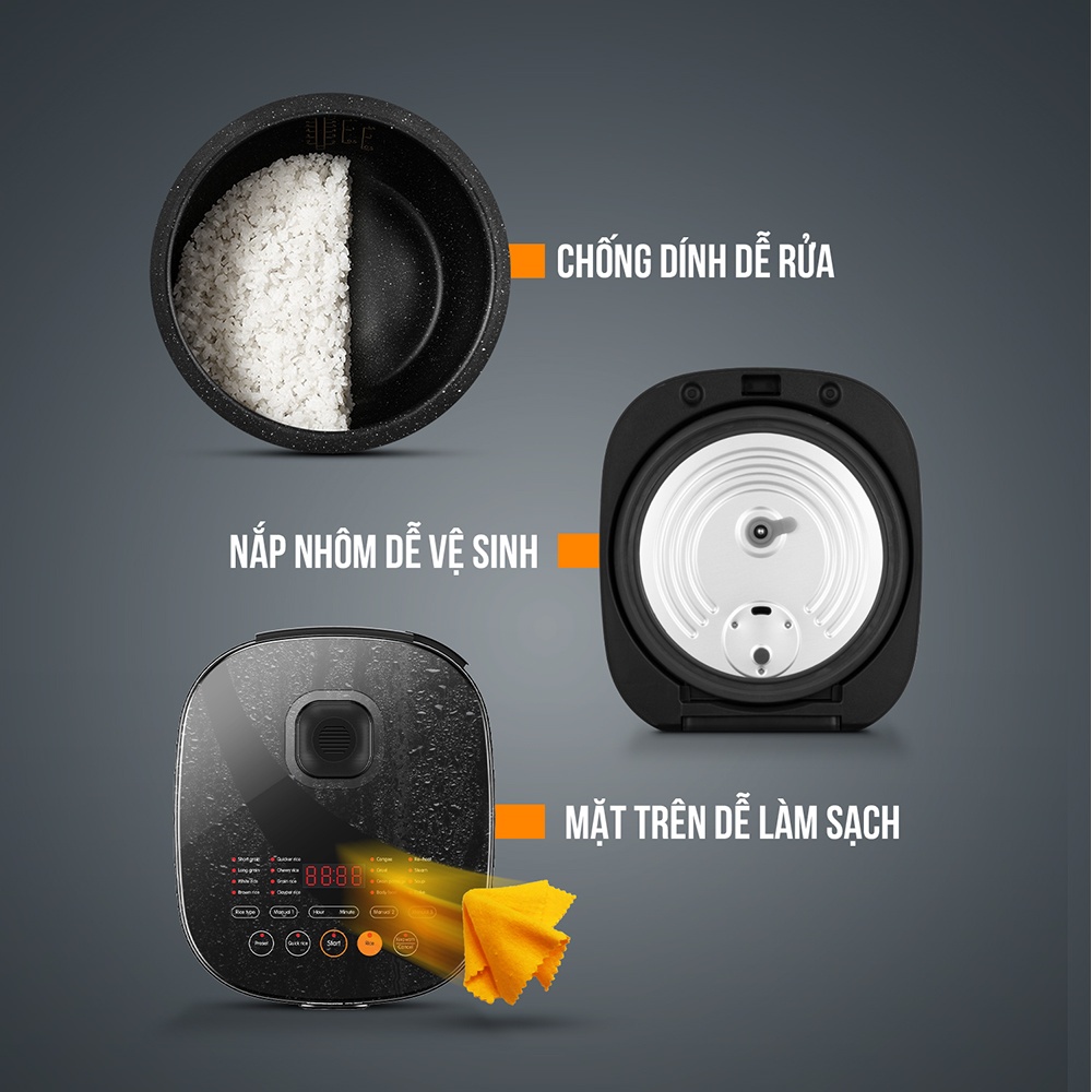 - Thiết kế nắp trong hạn chế đọng hơi nước, dễ dàng tháo rời để vệ sinh