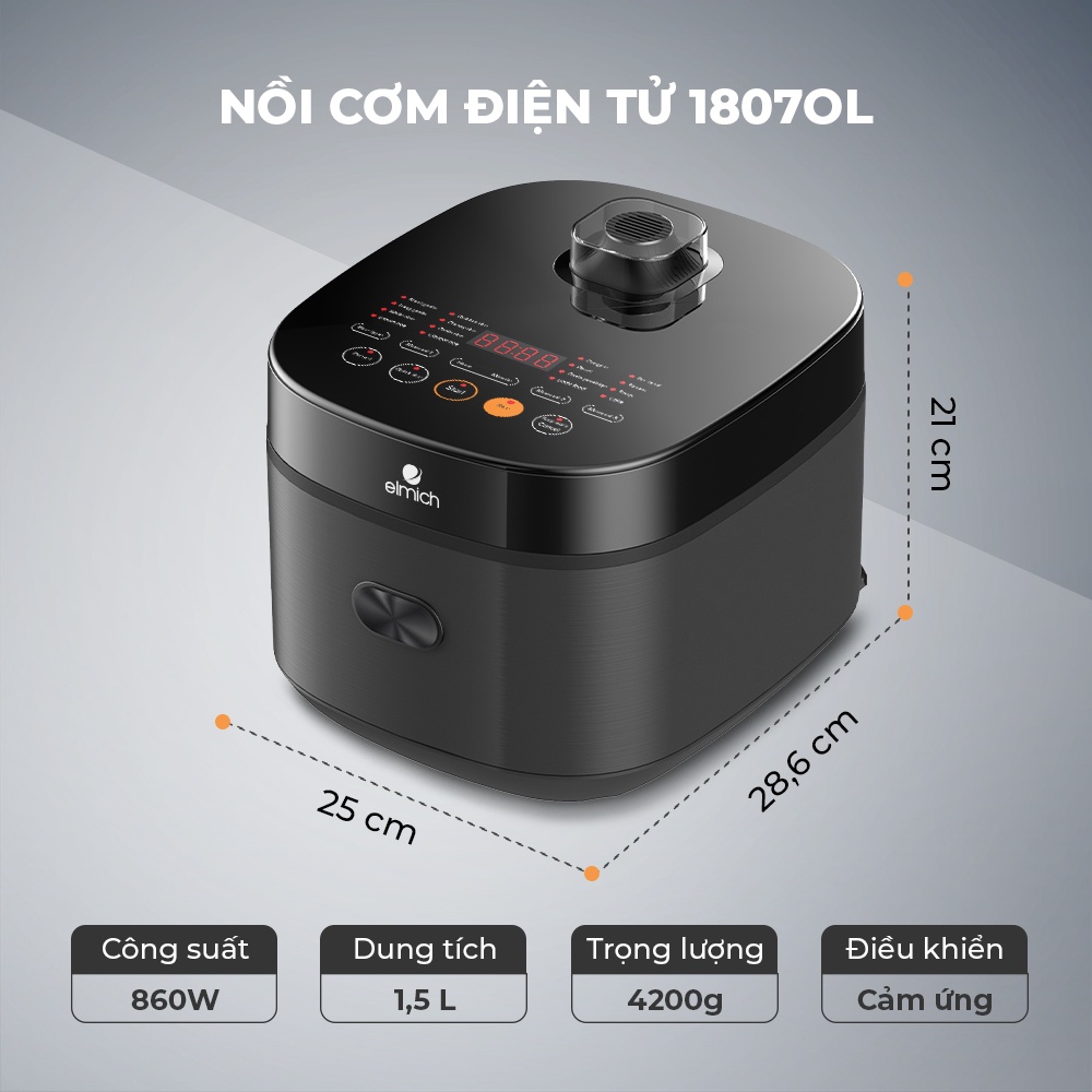 [Mã ELHADEV giảm 4% đơn 300K] Nồi cơm điện tử cao cấp đa năng Elmich 1,5L RCE-1807