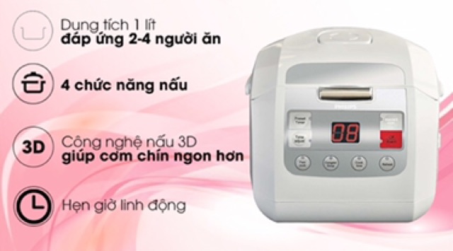 Nồi cơm điện dung tích 1 lít cho gia đình 2 – 4 người dùng.