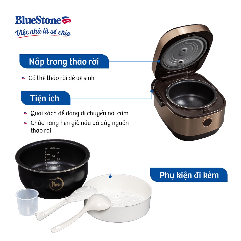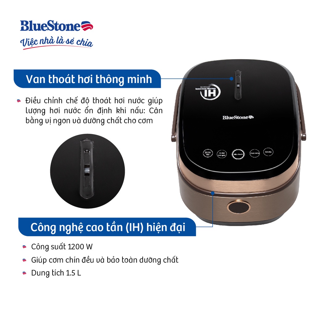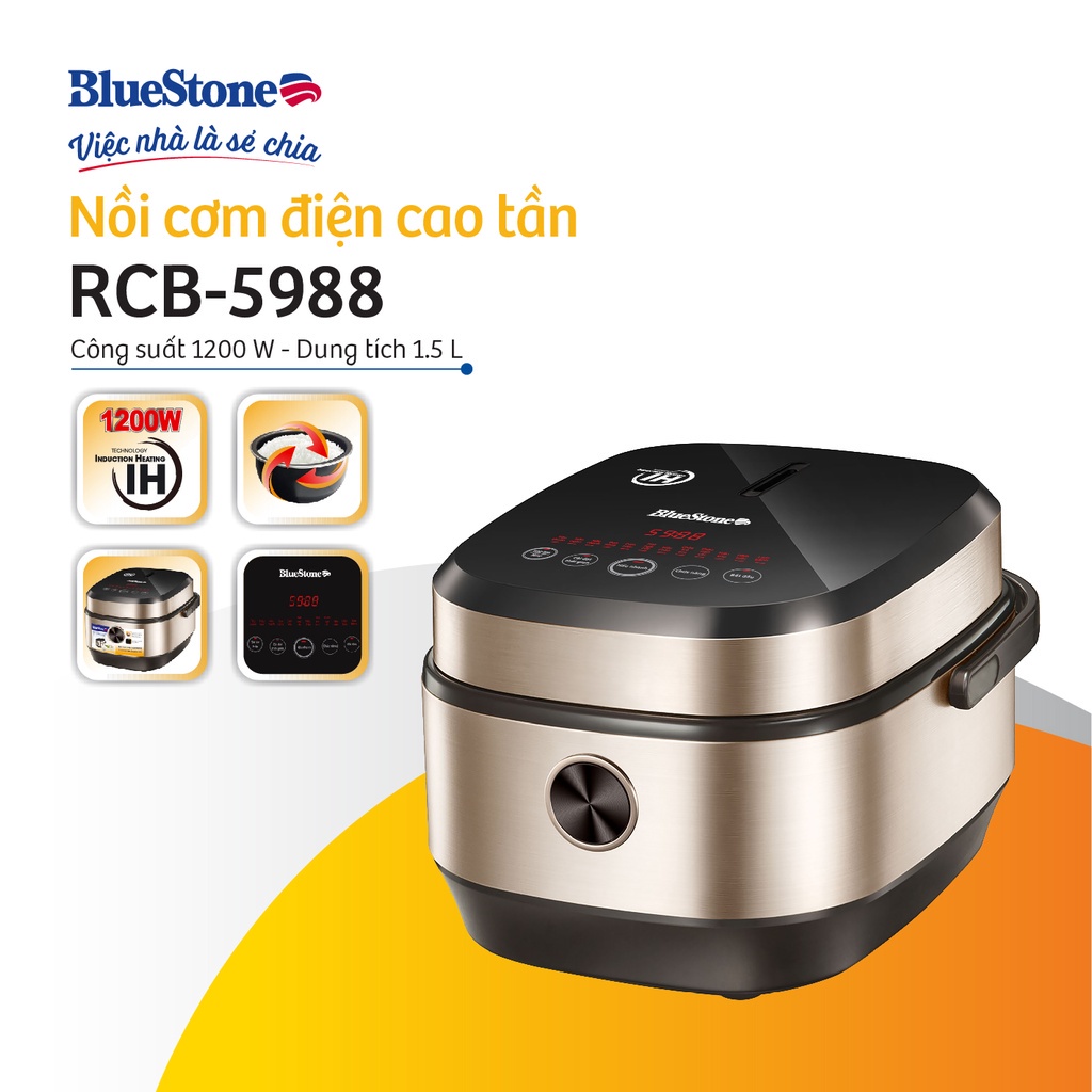 Nồi cơm cao tần Bluestone RCB-5988 1.5 lít thương hiệu tốt, chất lượng cao, dễ dùng, nấu nướng đa chức năng, gia dụng giá tốt đáng sắm cho bếp gia đình.