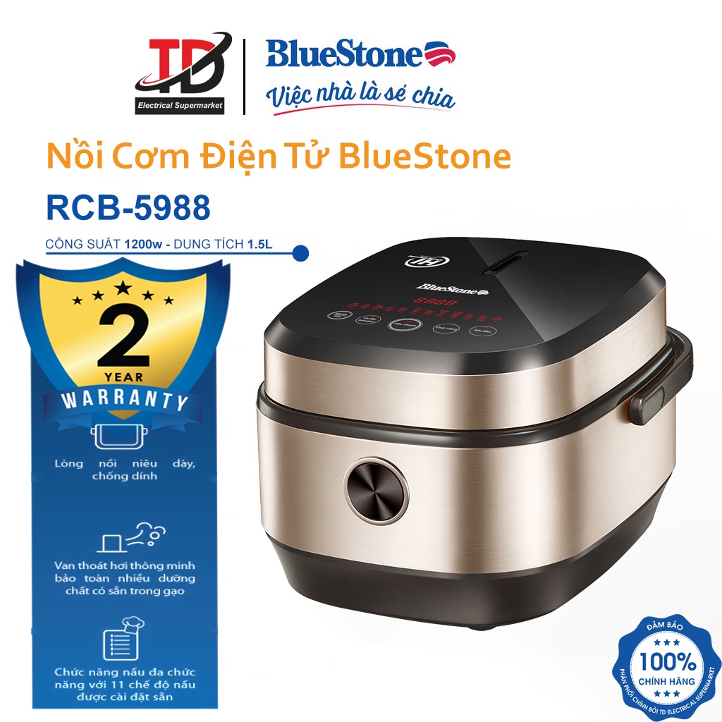 Nồi Cơm Điện Tử Cao Tần BlueStone RCB-5988,Lòng Niêu Siêu Dày, 1200W - 1.5 Lít, Bảo Hành Chính Hãng 2 Năm