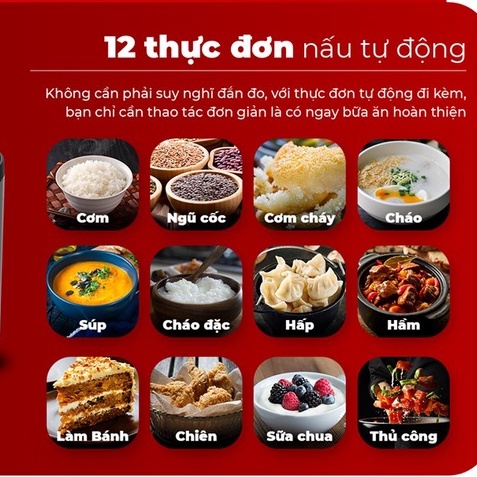 - Nồi cơm điện 2 ngăn trang bị 12 thực đơn nấu tự động