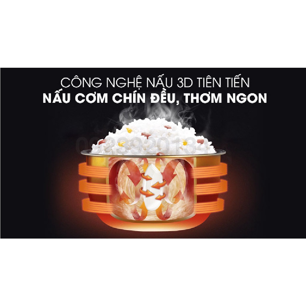 Nhiệt lượng đường truyền đi từ đáy nồi, xung quanh thân nồi và nắp nồi, cho lòng nồi được làm nóng đều, giúp nấu cơm chín ngon, không khô hay nhão bề mặt.