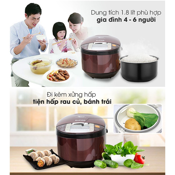 Nồi cơm điện tử Supor dung tích 1.8L, Lòng nồi dạng niêu siêu dày giúp cơm chín đều và thơm ngon hơn, Tặng kèm xửng hấp