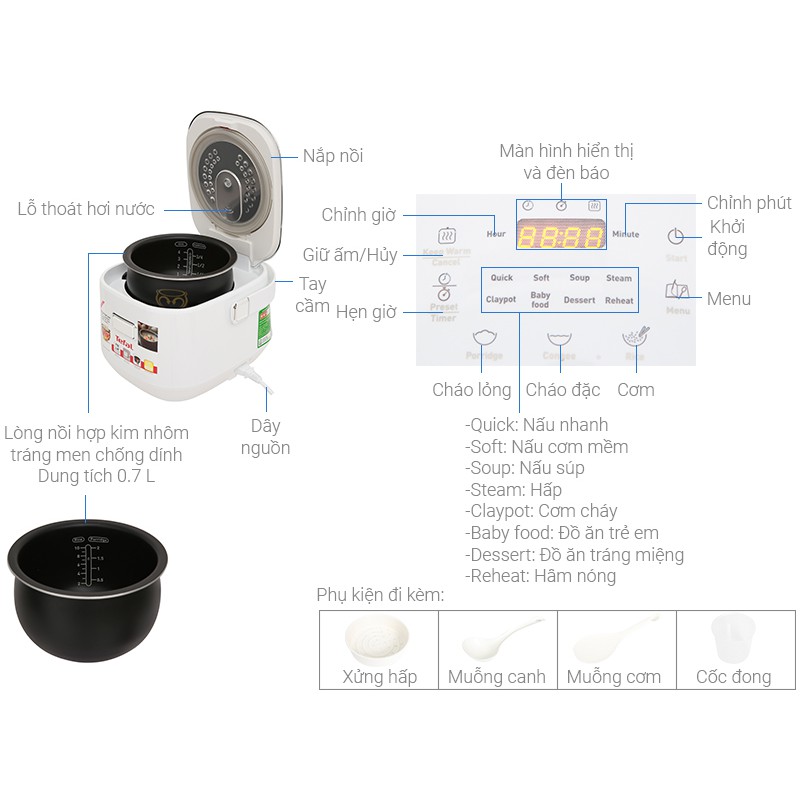 Là sản phẩm được sản xuất với các công nghệ hiện đại, nồi cơm điện điện tử được trang bị nhiều chương trình nấu chuyên dụng dành cho việc nấu nướng, giúp bạn nấu những món ăn khác nhau. Hơn nữa, việc lựa chọn vô cùng đơn giản với bảng nút được thiết kế trên mặt nồi.