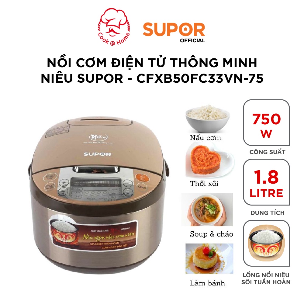 Nồi cơm điện tử thông minh niêu E-Spherical Supor CFXB50FC33VN-75 - 1.8L, 750W