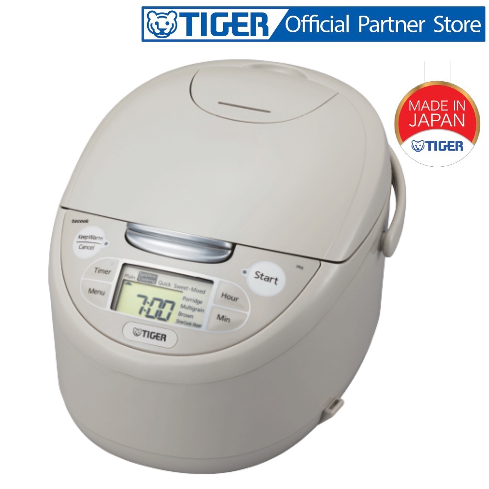 Nồi cơm điện tử hiệu Tiger 4 trong 1 JAX-R18W với 9 chế độ nấu, lồng tráng men chống dính bằng tia hồng ngoại dầy 1.8mm với thiết kế 3 vòng nhiệt giúp cơm chín nhanh hơn mà hạt cơm không bị nát và không bị khô trong quá trình giữ ấm cơm, với chế độ nấu “Tacook” được tích hợp để vừa nấu cơm và vừa nấu thức ăn cùng một lúc giúp tiết kiệm thời gian, màn hình LCD, 2 chế độ hẹn giờ nấu, có quai xách, chức năng giữ ấm cơm đến 12h, cốc đong gạo, muỗng xới cơm, muỗng múc cháo/soup, khay nấu đồng thời, sách hướng dẫn các thực đơn nấu ăn kèm theo sản phẩm, màu xám be.Xuất xứ : Made In Japan