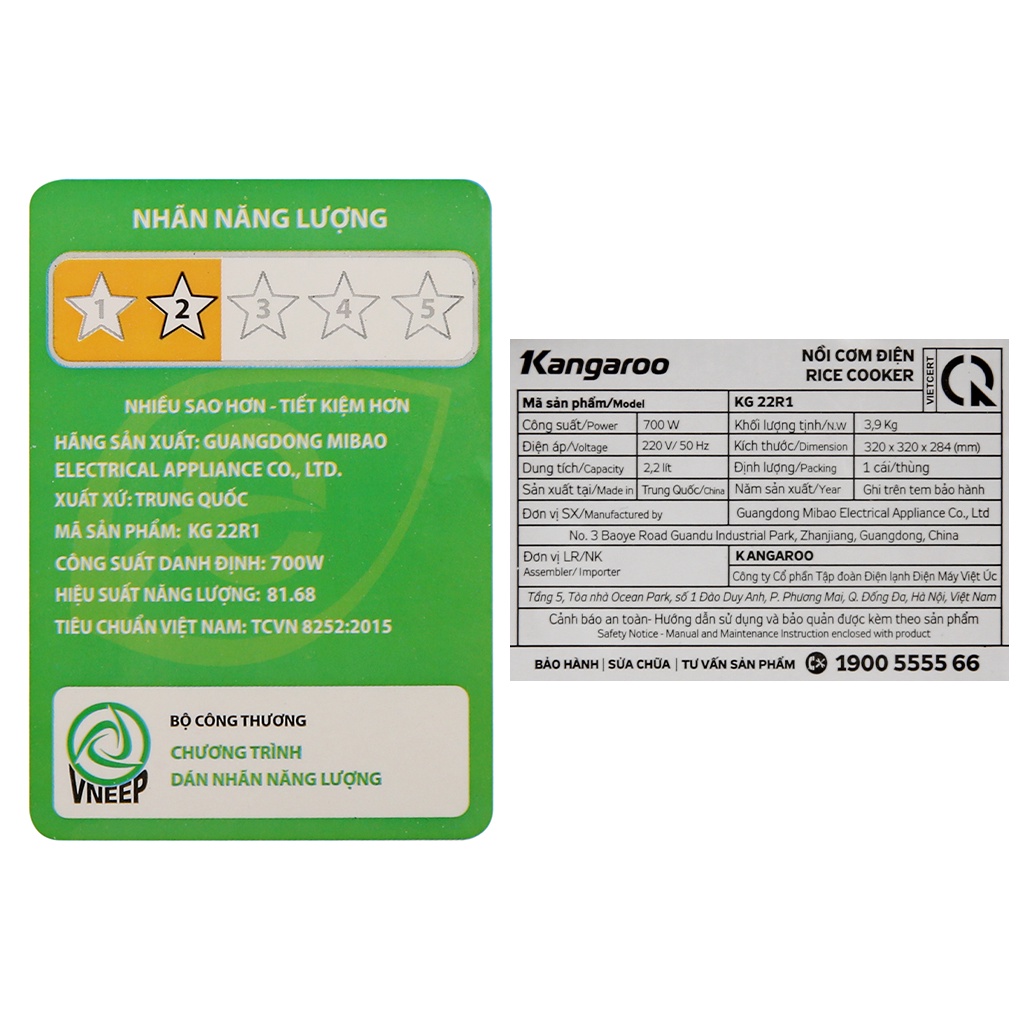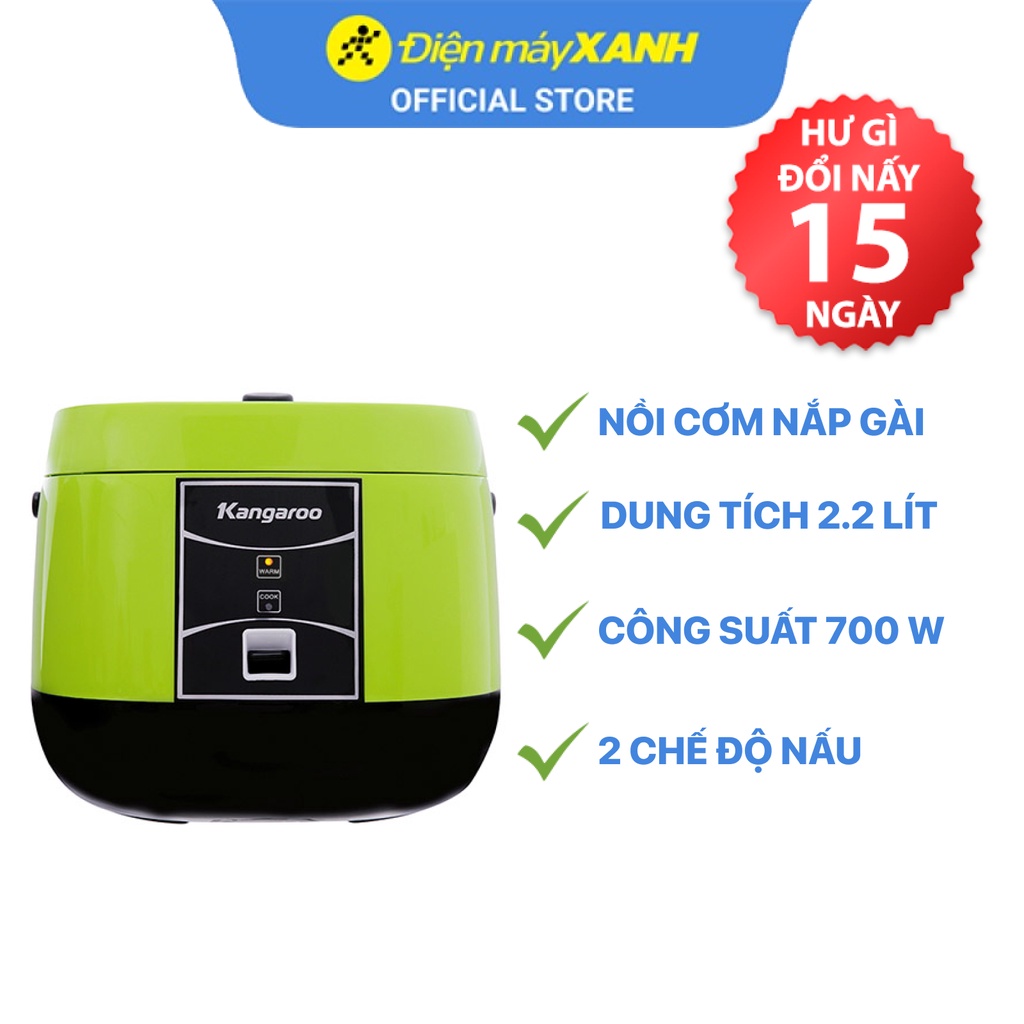 [Mã ELHADEV giảm 4% đơn 300K] Nồi cơm nắp gài Kangaroo KG22R1 2.2 lít