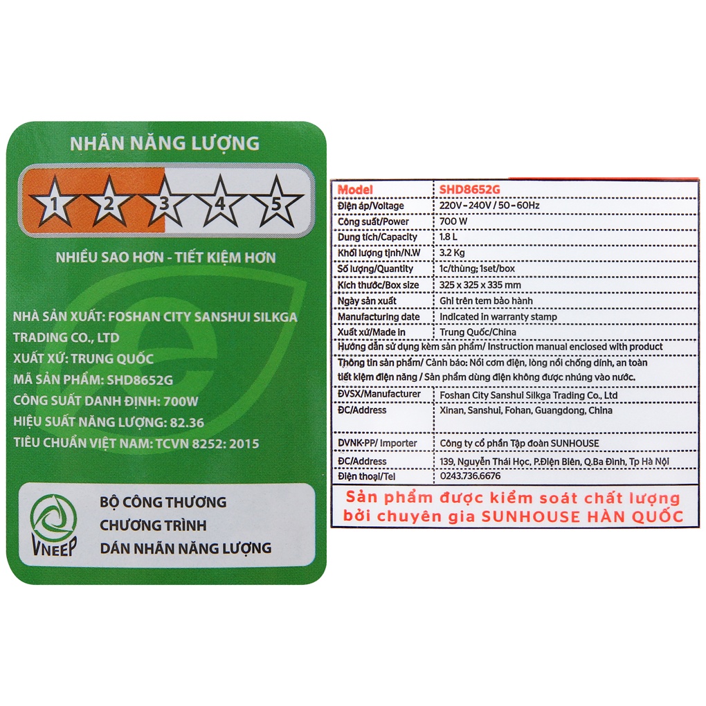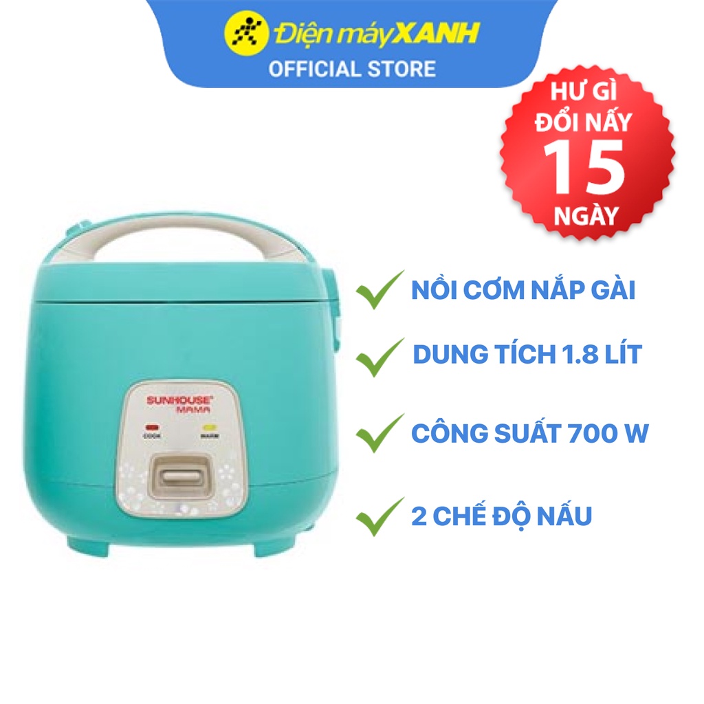 Thiết Bị Điện Gia Dụng > Đồ gia dụng nhà bếp > Nồi cơm điện || [Mã ELMALL150 giảm 8% đơn 500K] Nồi cơm nắp gài Sunhouse Mama 1.8 lít SHD8652GCòn hàng