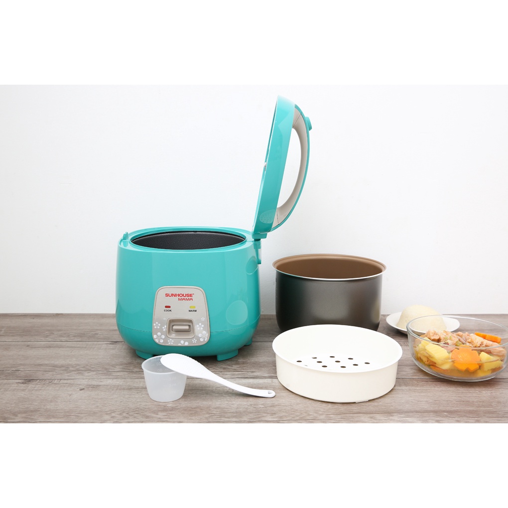 ● Nồi cơm điện Sunhouse có màu xanh ngọc bắt mắt, xinh xắn, cho không gian bếp thêm sinh động, hiện đại hơnNồi cơm nắp gài, dễ dàng đóng mở nắp, di chuyển và bảo quản sản phẩm gọn gàng.
