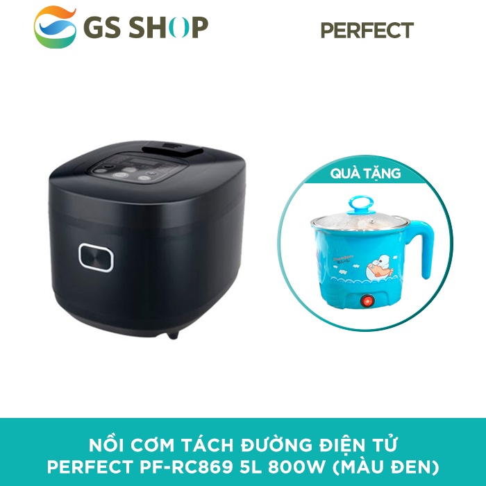 Nồi cơm tách đường điện tử Perfect PF-RC869 5L 800W (Màu đen) | TẶNG: Ca nấu mini đa năng Perfect