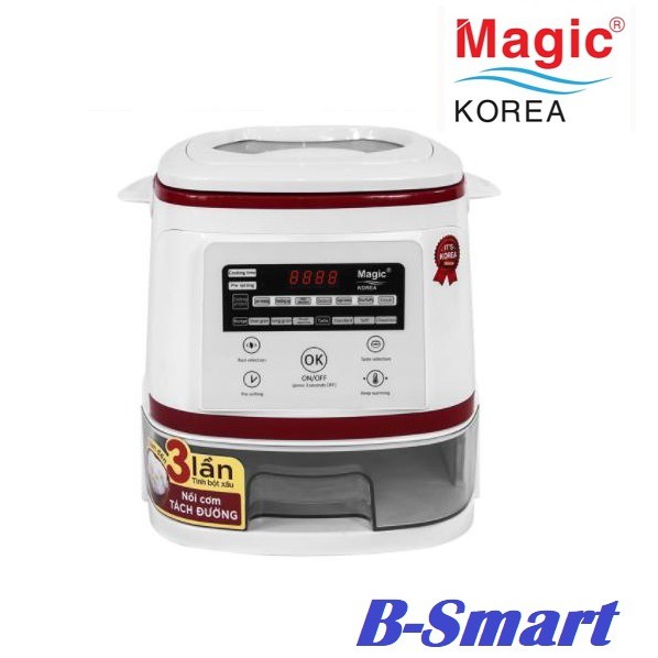 Nồi cơm tách đường Magic Korea - A511 là sản phẩm có khả năng loại bỏ lượng đường thừa trong cơm khi nấu. Ở một nhiệt độ nhất định - được gọi là nhiệt độ "dẻo", nơi quá trình "dẻo hóa" của gạo bắt đầu xuất hiện - các phân tử tinh bột nhanh bắt đầu bị đẩy ra khỏi gạo và hòa vào trong nước, trong khi tinh bột chậm và các chất dinh dưỡng khác vẫn ở lại.