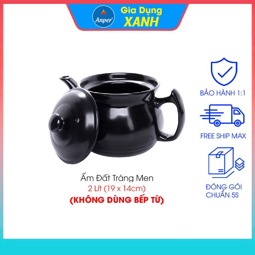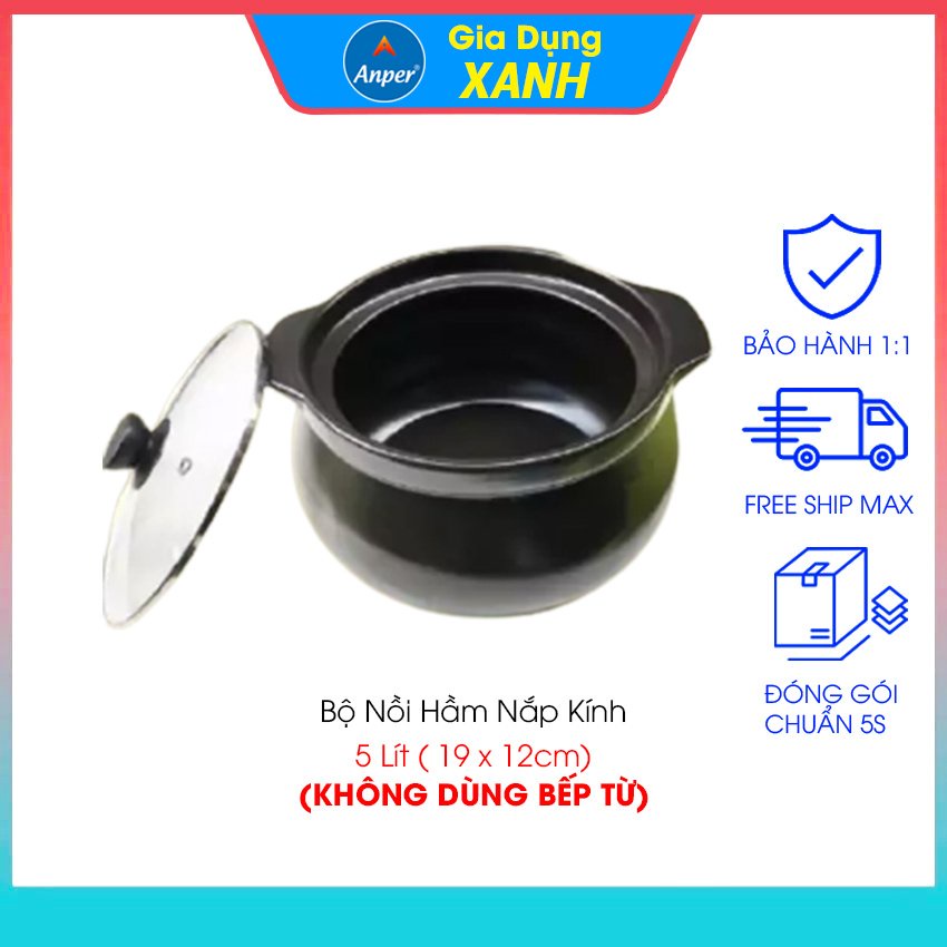 Nồi đất ấm đất 3L4L5L ANPER tráng men nắp thuỷ tinh (ko bếp từ ) nấu cháo kho cá kho thịt sắc thuốc