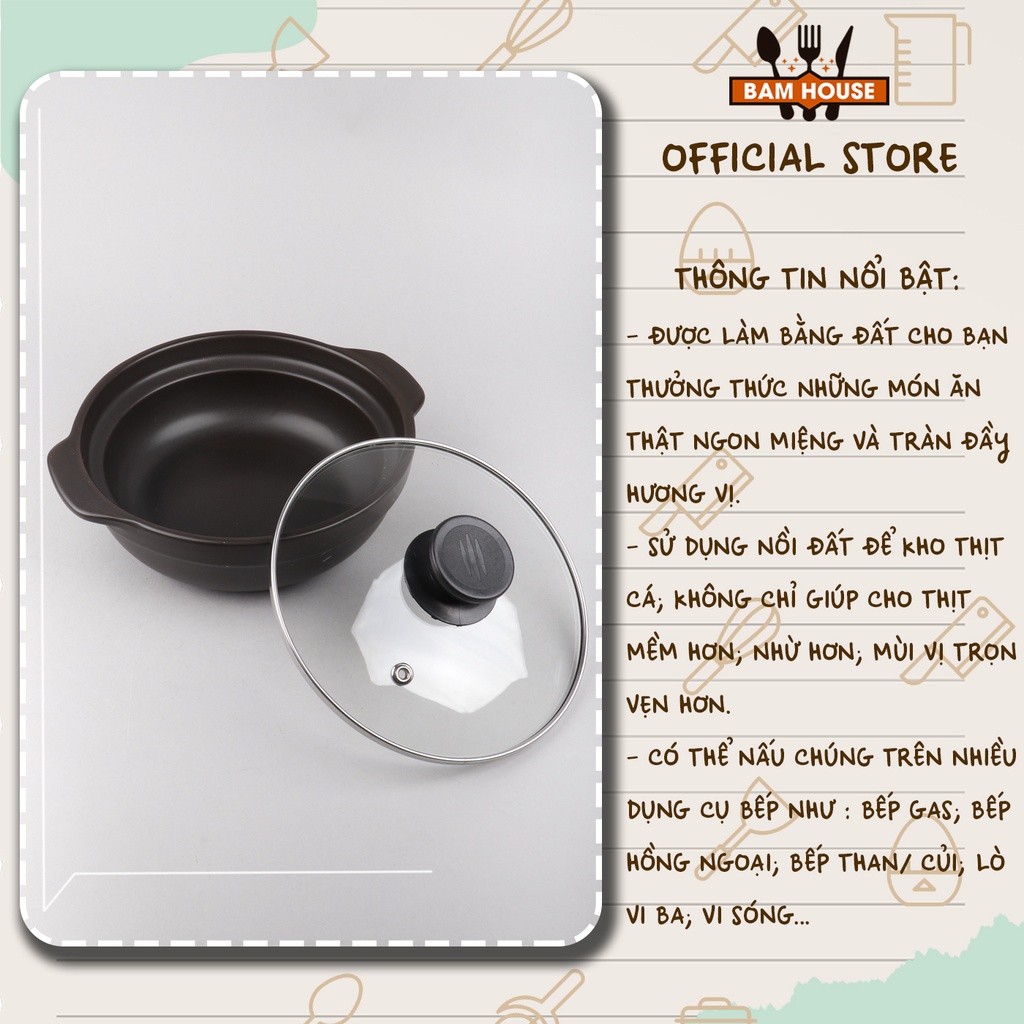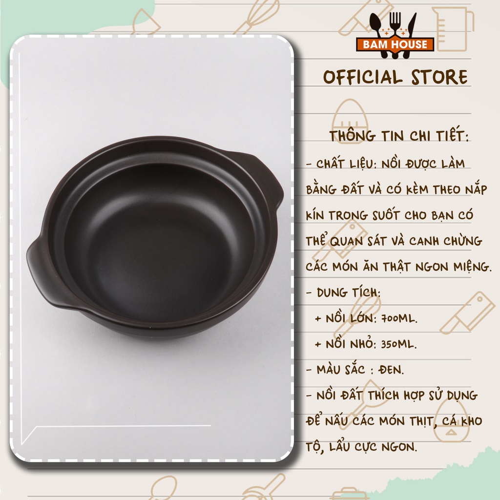 Nhà cửa & Đời sống > Dụng cụ nhà bếp > Nồi || Nồi đất tráng men kho thịt cá Bam House dung tích 800ml bền chắc cao cấp ND01 – Gia dụng bếpCòn hàng